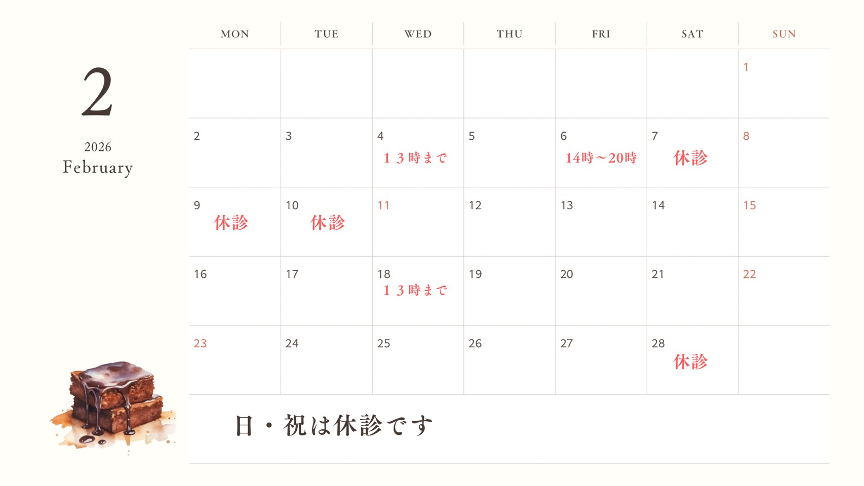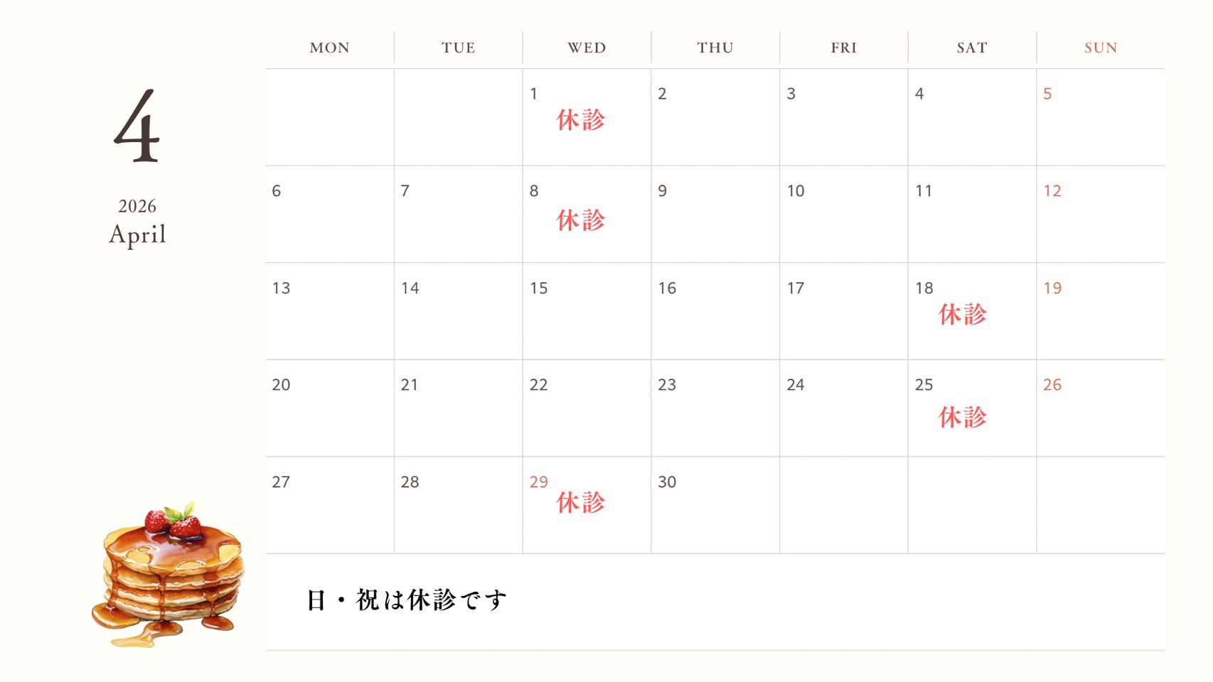 ※水曜日・土曜日午前は不定期で診療を行っております。